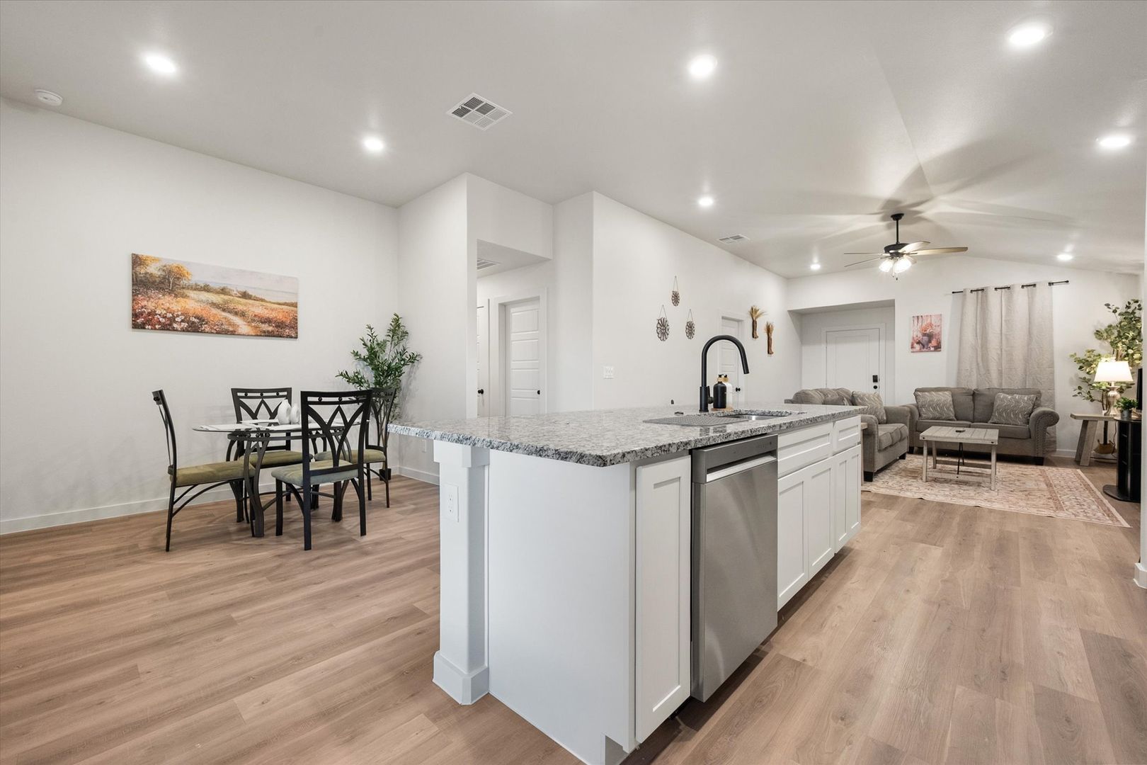 Inside, the open layout centers around a spacious kitchen island, perfect for entertaining, family meals, and everyday living. Whether you’re hosting guests or watching kids run around and enjoy the space, this home is designed to feel warm, comfortable, and truly lived in.