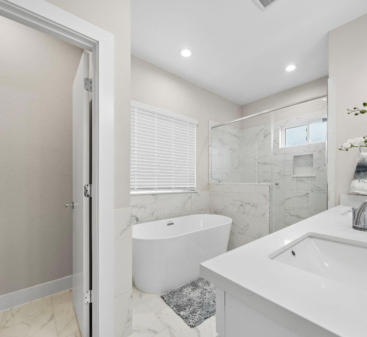 Upstairs, unwind in your private primary suite boasting a spa-style bathroom with dual sinks, a deep soaking tub, and a walk-in rain shower with a built-in bench. The expansive walk-in closet offers generous storage space. Two additional Jack and Jill bedrooms share a stylish full bathroom, and a convenient upstairs laundry room makes household chores effortless.