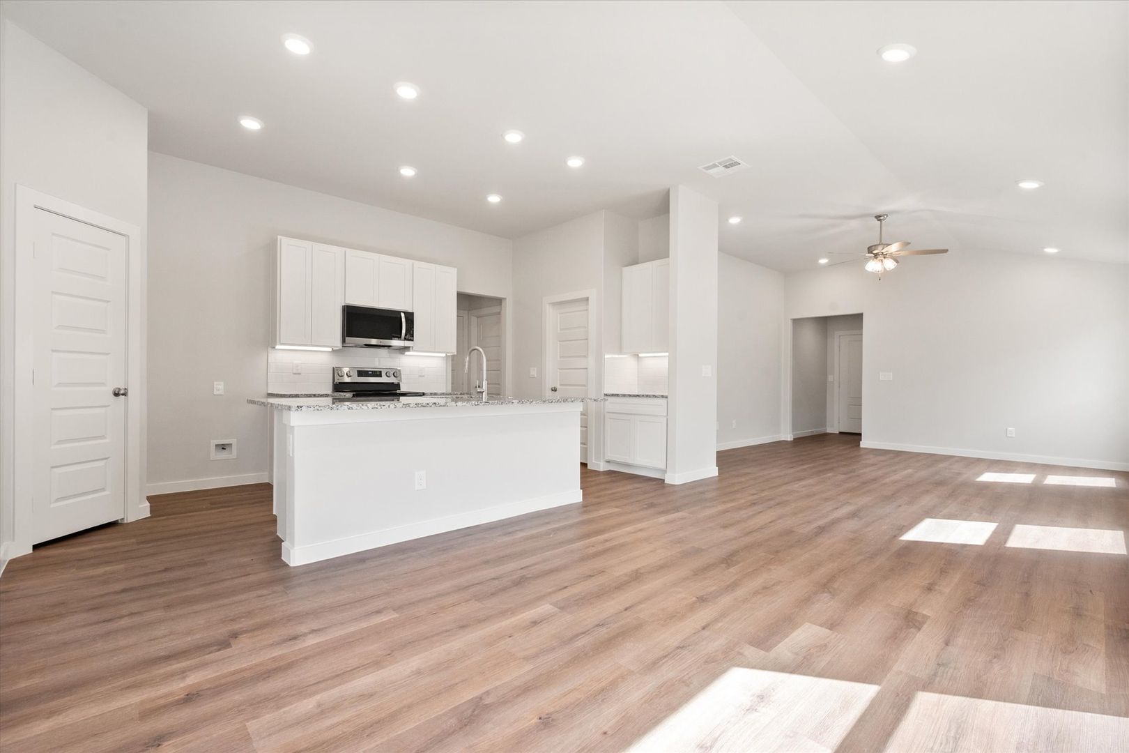 Step inside to discover an open and airy floor plan filled with natural light. The living area flows seamlessly into the dining space and kitchen, creating an ideal setup for family gatherings or cozy evenings at home. The kitchen features generous counter space, ample cabinetry, and modern appliances, making cooking both convenient and enjoyable.