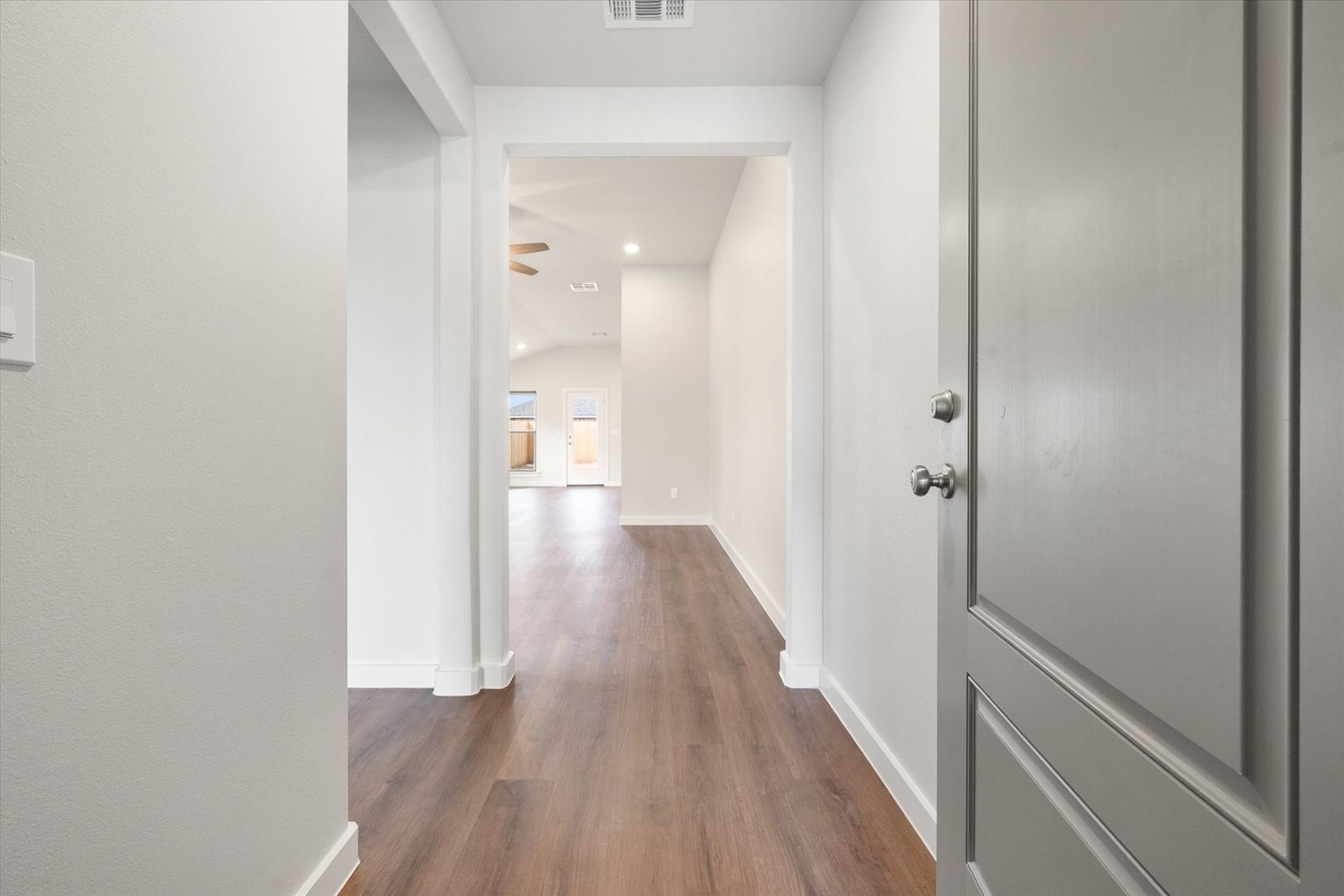 Out back, you’ll find a large fenced-in yard with sod and an irrigation system — perfect for outdoor dining, playtime, or unwinding in the fresh air. Enjoy thoughtful backyard upgrades, including sod landscaping, an irrigation system, a covered patio, outdoor lighting, and a tall privacy fence. The attached 2-car garage offers secure parking, extra storage, and direct home access.