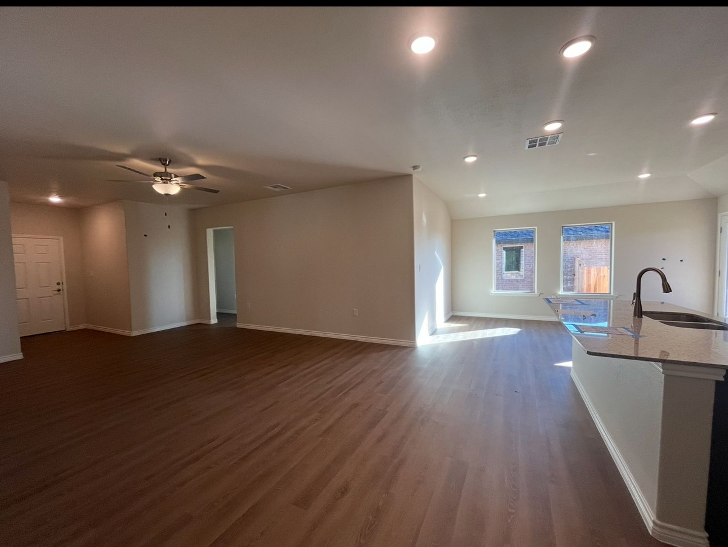 Step outside to discover a covered patio overlooking the freshly sodded backyard, perfect for enjoying warm West Texas evenings, hosting barbecues, or simply relaxing in a private outdoor space. The home also includes brand-new landscaping and an irrigation system, ensuring a lush, well-maintained yard with minimal upkeep. Additional features include a two-car garage, providing ample storage and convenience.