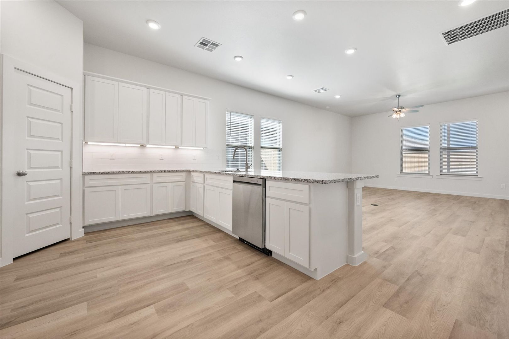 Step inside to find an open and inviting floor plan filled with natural light. The living area flows seamlessly into the dining space and kitchen, creating a perfect setting for family gatherings or quiet evenings at home. The kitchen features generous counter space, ample cabinetry, and modern appliances, making meal preparation both easy and enjoyable.