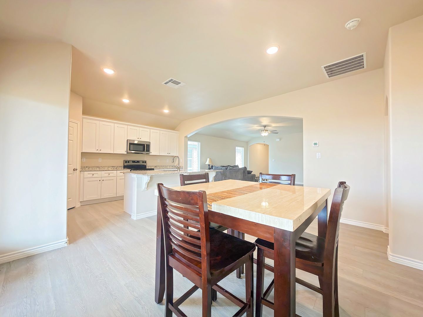 Welcome to this exceptional new construction by Silver Leaf Homes, where modern elegance meets everyday comfort. Thoughtfully designed, this beautiful home offers four spacious bedrooms and two full bathrooms, all centered around an open-concept layout that seamlessly connects the living, kitchen, and dining areas—ideal for both daily living and effortless entertaining.